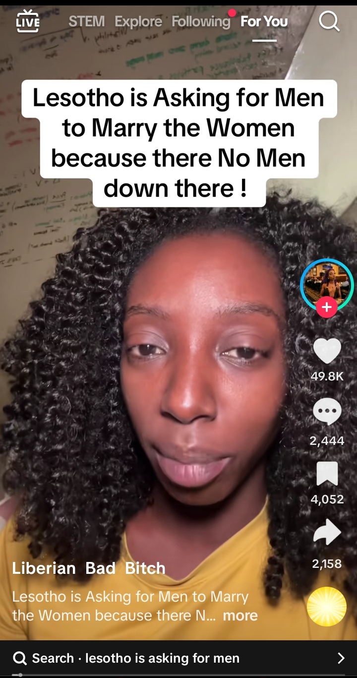 The video, shared by a TikTok user on 3 September 2025, suggests Lesotho has a drastically skewed gender ratio and is actively seeking foreign men to “marry Basotho women.” It further attempts to sensationalize the country by mentioning its cold climate and snowfall.